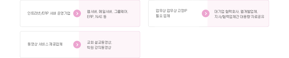| 유형 | 기업전용 광랜 | ADSL | ADSL |