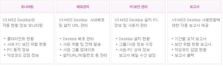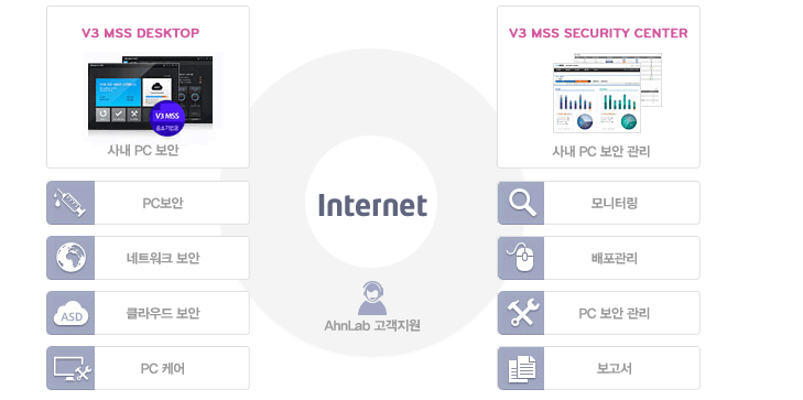 - 인터넷을 통해 배포하는 가벼운 클라이언트 프로그램 V3 MSS Desktop